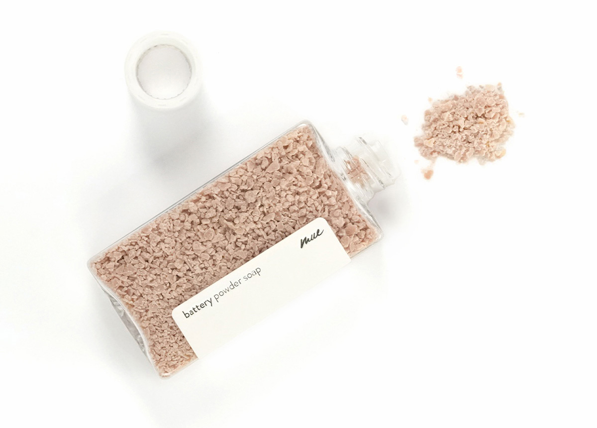 mueのパウダーソープは、職人の手でつくられるコールドプロセス石鹸を粉末状にしたもの。