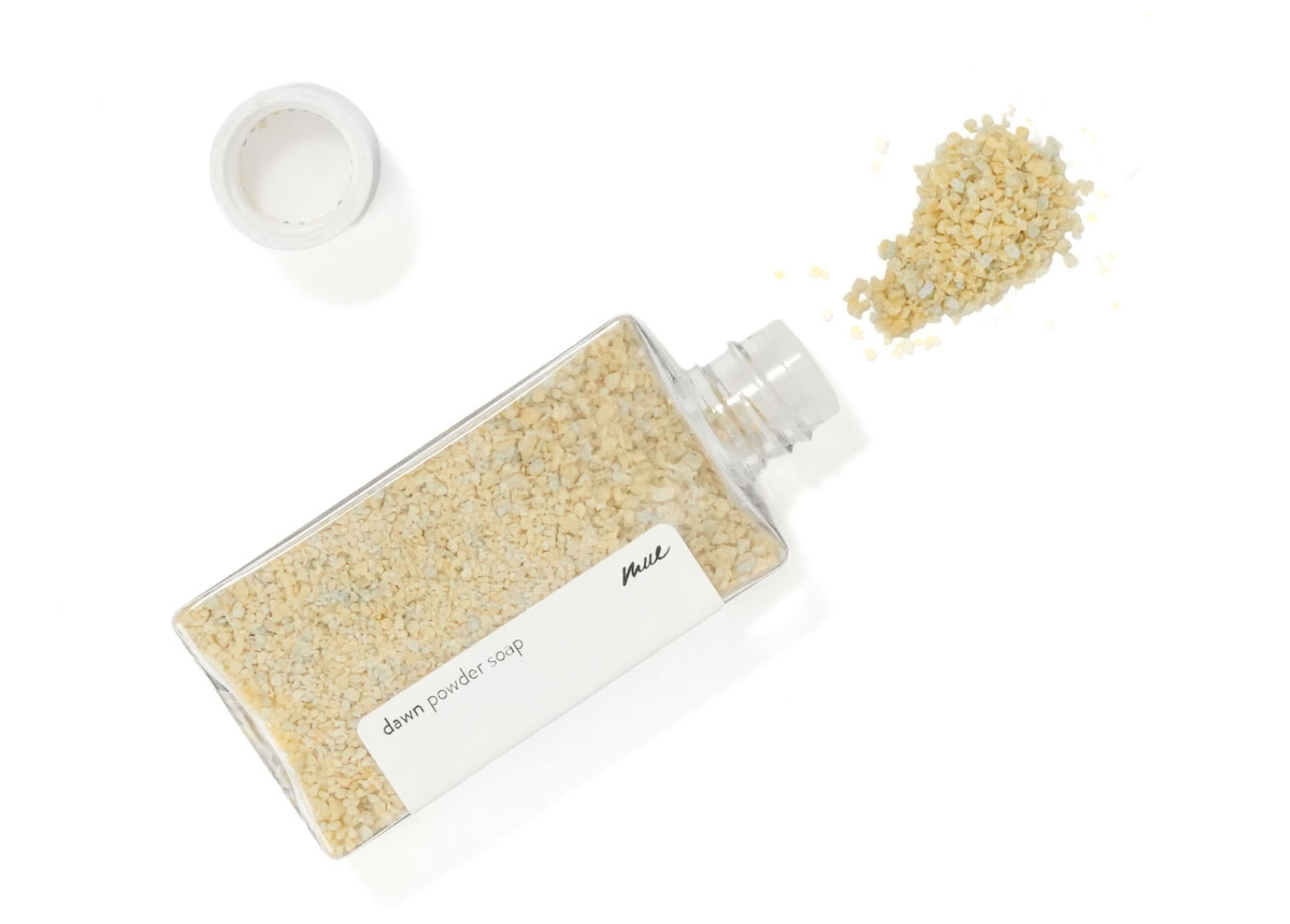mueのパウダーソープは、職人の手でつくられるコールドプロセス石鹸を粉末状にしたもの。