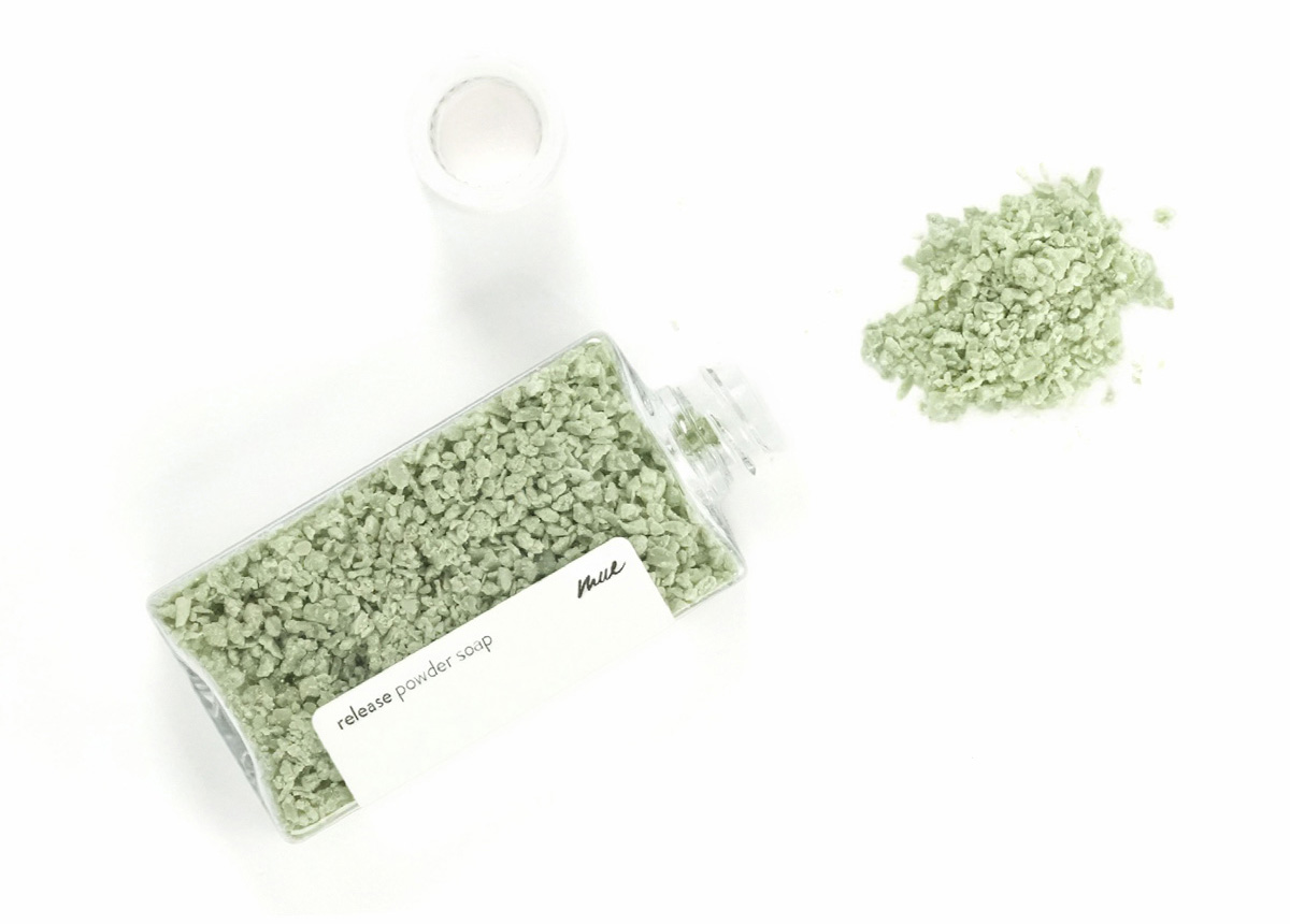 mueのパウダーソープは、職人の手でつくられるコールドプロセス石鹸を粉末状にしたもの。